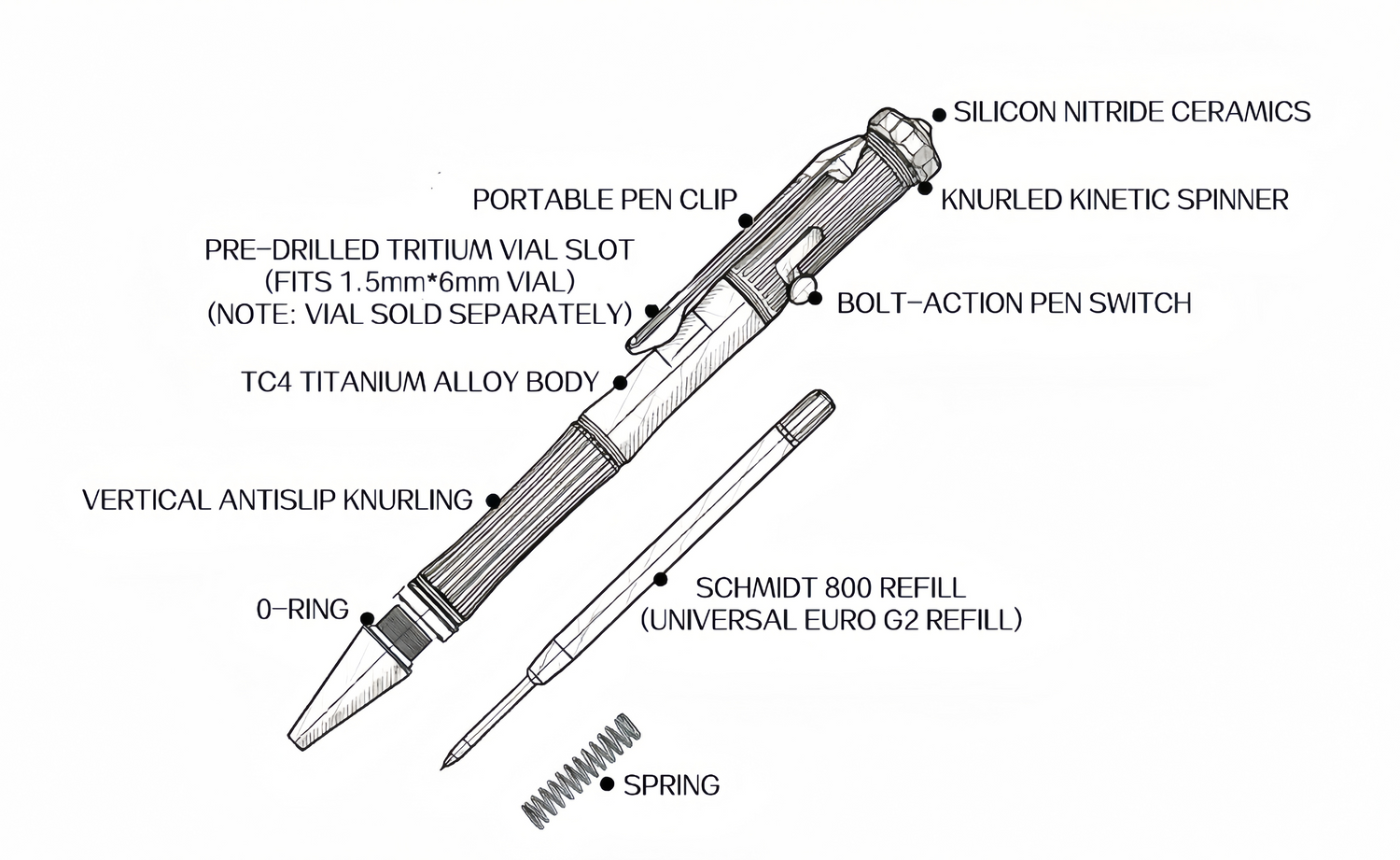 Solid titanium. Crisp bolt action. Silent kinetic spinner. The definitive writing instrument for your daily carry.